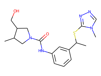CC1CN(CC1CO)C(=O)NC2=CC=CC(=C2)C(C)SC3=NN=C[N]3C