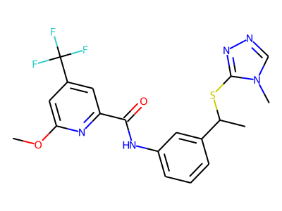 COC1=CC(=CC(=N1)C(=O)NC2=CC=CC(=C2)C(C)SC3=NN=C[N]3C)C(F)(F)F