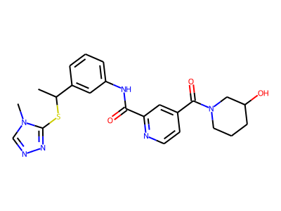 SMILES CC(SC1=NN=C[N]1C)C2=CC(=CC=C2)NC(=O)C3=NC=CC(=C3)C(=O)N4CCCC(O)C4