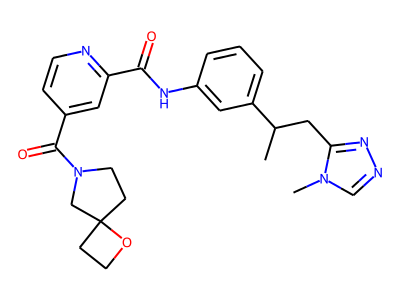 CC(CC1=NN=C[N]1C)C2=CC=CC(=C2)NC(=O)C3=NC=CC(=C3)C(=O)N4CCC5(CCO5)C4