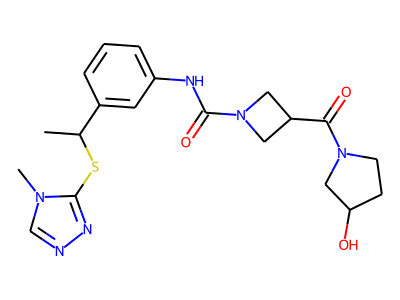 CC(SC1=NN=C[N]1C)C2=CC(=CC=C2)NC(=O)N3CC(C3)C(=O)N4CCC(O)C4