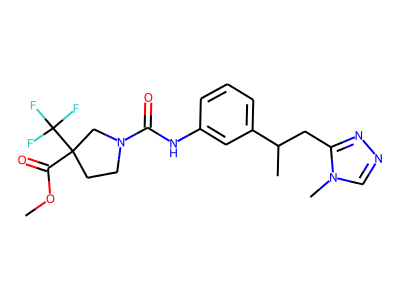 COC(=O)C1(CCN(C1)C(=O)NC2=CC(=CC=C2)C(C)CC3=NN=C[N]3C)C(F)(F)F