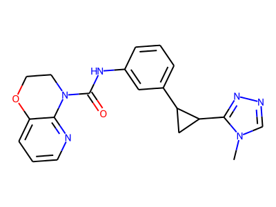 C[N]1C=NN=C1C2CC2C3=CC=CC(=C3)NC(=O)N4CCOC5=CC=CN=C45