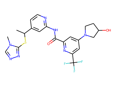 CC(SC1=NN=C[N]1C)C2=CC(=NC=C2)NC(=O)C3=NC(=CC(=C3)N4CCC(O)C4)C(F)(F)F
