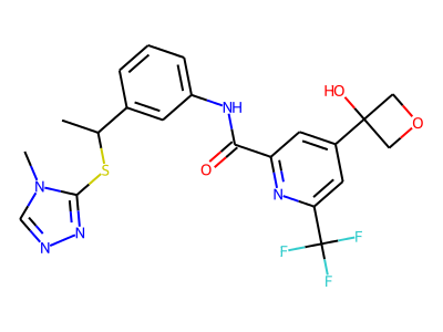 CC(SC1=NN=C[N]1C)C2=CC(=CC=C2)NC(=O)C3=NC(=CC(=C3)C4(O)COC4)C(F)(F)F