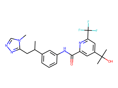 CC(CC1=NN=C[N]1C)C2=CC=CC(=C2)NC(=O)C3=CC(=CC(=N3)C(F)(F)F)C(C)(C)O