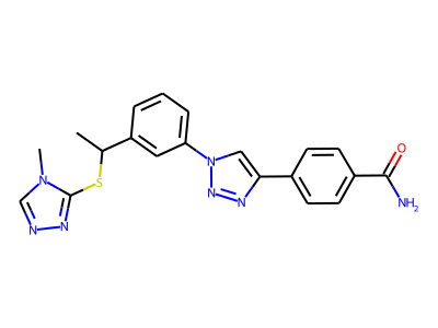 CC(SC1=NN=C[N]1C)C2=CC(=CC=C2)[N]3C=C(N=N3)C4=CC=C(C=C4)C(N)=O