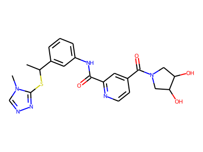 CC(SC1=NN=C[N]1C)C2=CC(=CC=C2)NC(=O)C3=NC=CC(=C3)C(=O)N4CC(O)C(O)C4