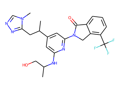 SMILES CC(CO)NC1=CC(=CC(=N1)N2CC3=C(C=CC=C3C2=O)C(F)(F)F)C(C)CC4=NN=C[N]4C