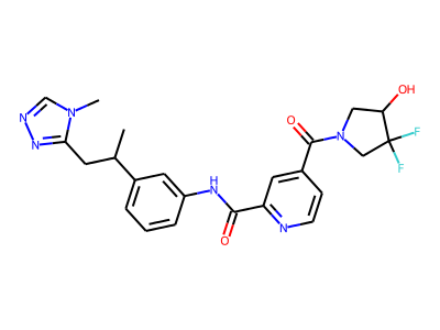 CC(CC1=NN=C[N]1C)C2=CC=CC(=C2)NC(=O)C3=NC=CC(=C3)C(=O)N4CC(O)C(F)(F)C4