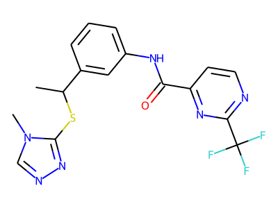 CC(SC1=NN=C[N]1C)C2=CC(=CC=C2)NC(=O)C3=NC(=NC=C3)C(F)(F)F