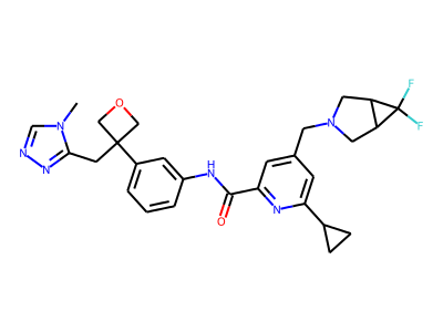 C[N]1C=NN=C1CC2(COC2)C3=CC=CC(=C3)NC(=O)C4=NC(=CC(=C4)CN5CC6C(C5)C6(F)F)C7CC7