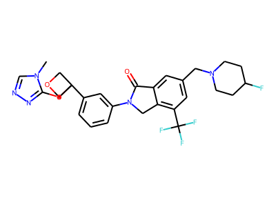 C[N]1C=NN=C1OC2(COC2)C3=CC=CC(=C3)N4CC5=C(C=C(CN6CCC(F)CC6)C=C5C4=O)C(F)(F)F