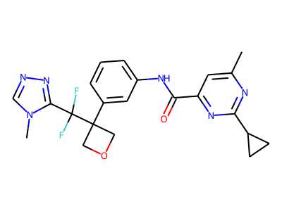 C[N]1C=NN=C1C(F)(F)C2(COC2)C3=CC(=CC=C3)NC(=O)C4=NC(=NC(=C4)C)C5CC5
