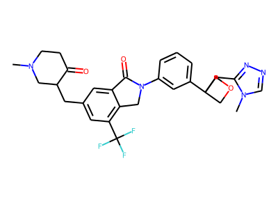CN1CCC(=O)C(C1)CC2=CC(=C3CN(C(=O)C3=C2)C4=CC(=CC=C4)C5(COC5)CC6=NN=C[N]6C)C(F)(F)F