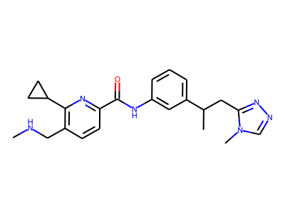 CNCC1=C(N=C(C=C1)C(=O)NC2=CC(=CC=C2)C(C)CC3=NN=C[N]3C)C4CC4