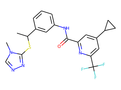 CC(SC1=NN=C[N]1C)C2=CC(=CC=C2)NC(=O)C3=NC(=CC(=C3)C4CC4)C(F)(F)F