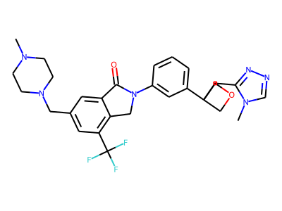CN1CCN(CC1)CC2=CC(=C3CN(C(=O)C3=C2)C4=CC(=CC=C4)C5(COC5)CC6=NN=C[N]6C)C(F)(F)F