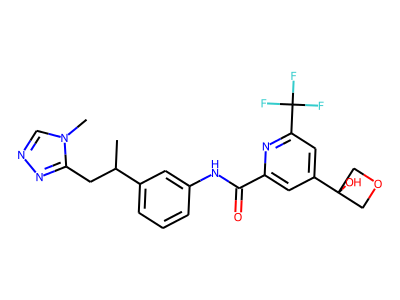 CC(CC1=NN=C[N]1C)C2=CC=CC(=C2)NC(=O)C3=CC(=CC(=N3)C(F)(F)F)C4(O)COC4