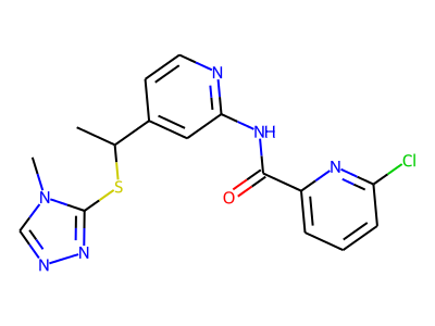CC(SC1=NN=C[N]1C)C2=CC(=NC=C2)NC(=O)C3=CC=CC(=N3)Cl