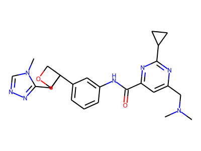 CN(C)CC1=CC(=NC(=N1)C2CC2)C(=O)NC3=CC(=CC=C3)C4(COC4)CC5=NN=C[N]5C