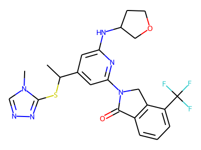 CC(SC1=NN=C[N]1C)C2=CC(=NC(=C2)NC3CCOC3)N4CC5=C(C=CC=C5C(F)(F)F)C4=O