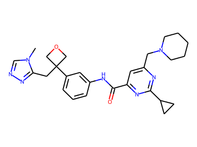 C[N]1C=NN=C1CC2(COC2)C3=CC=CC(=C3)NC(=O)C4=NC(=NC(=C4)CN5CCCCC5)C6CC6
