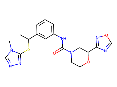 CC(SC1=NN=C[N]1C)C2=CC(=CC=C2)NC(=O)N3CCOC(C3)C4=NOC=N4