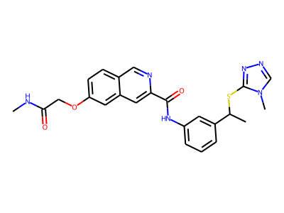SMILES CNC(=O)COC1=CC=C2C=NC(=CC2=C1)C(=O)NC3=CC=CC(=C3)C(C)SC4=NN=C[N]4C