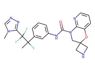 C[N]1C=NN=C1C(F)(F)C(C)(F)C2=CC(=CC=C2)NC(=O)N3CC4(CNC4)OC5=CC=CN=C35