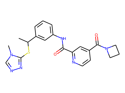 CC(SC1=NN=C[N]1C)C2=CC(=CC=C2)NC(=O)C3=NC=CC(=C3)C(=O)N4CCC4