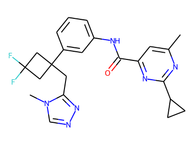C[N]1C=NN=C1CC2(CC(F)(F)C2)C3=CC(=CC=C3)NC(=O)C4=NC(=NC(=C4)C)C5CC5