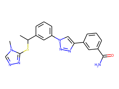 CC(SC1=NN=C[N]1C)C2=CC(=CC=C2)[N]3C=C(N=N3)C4=CC(=CC=C4)C(N)=O