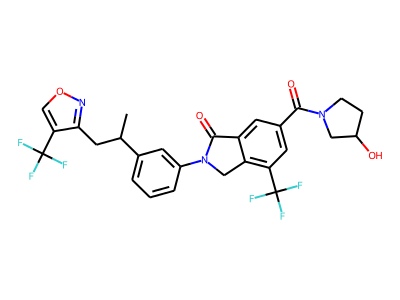 CC(CC1=NOC=C1C(F)(F)F)C2=CC=CC(=C2)N3CC4=C(C=C(C=C4C3=O)C(=O)N5CCC(O)C5)C(F)(F)F