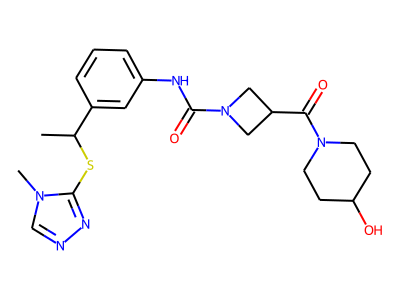 CC(SC1=NN=C[N]1C)C2=CC(=CC=C2)NC(=O)N3CC(C3)C(=O)N4CCC(O)CC4