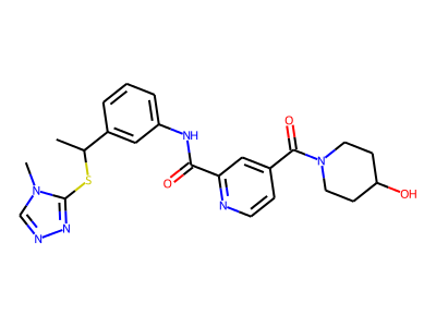 CC(SC1=NN=C[N]1C)C2=CC(=CC=C2)NC(=O)C3=NC=CC(=C3)C(=O)N4CCC(O)CC4