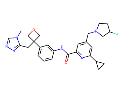 C[N]1C=NN=C1CC2(COC2)C3=CC=CC(=C3)NC(=O)C4=NC(=CC(=C4)CN5CCC(F)C5)C6CC6
