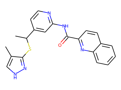 CC(SC1=N[NH]C=C1C)C2=CC(=NC=C2)NC(=O)C3=NC4=CC=CC=C4C=C3