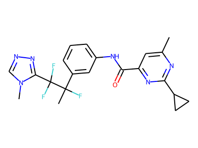C[N]1C=NN=C1C(F)(F)C(C)(F)C2=CC(=CC=C2)NC(=O)C3=NC(=NC(=C3)C)C4CC4