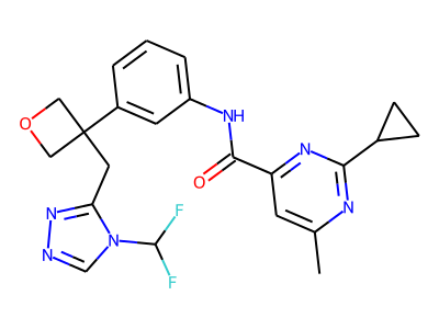 CC1=CC(=NC(=N1)C2CC2)C(=O)NC3=CC=CC(=C3)C4(COC4)CC5=NN=C[N]5C(F)F