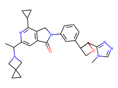 CC(N1CC2(CC2)C1)C3=CC4=C(CN(C4=O)C5=CC(=CC=C5)C6(COC6)CC7=NN=C[N]7C)C(=N3)C8CC8