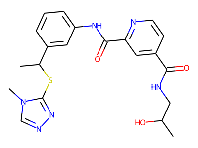 CC(O)CNC(=O)C1=CC(=NC=C1)C(=O)NC2=CC=CC(=C2)C(C)SC3=NN=C[N]3C