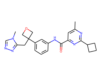 C[N]1C=NN=C1CC2(COC2)C3=CC=CC(=C3)NC(=O)C4=NC(=NC(=C4)C)C5CCC5
