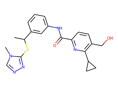 CC(SC1=NN=C[N]1C)C2=CC(=CC=C2)NC(=O)C3=NC(=C(CO)C=C3)C4CC4