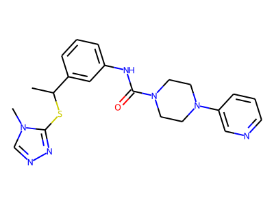 CC(SC1=NN=C[N]1C)C2=CC(=CC=C2)NC(=O)N3CCN(CC3)C4=CN=CC=C4