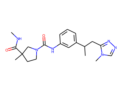 CNC(=O)C1(C)CCN(C1)C(=O)NC2=CC(=CC=C2)C(C)CC3=NN=C[N]3C