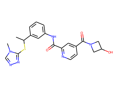 CC(SC1=NN=C[N]1C)C2=CC(=CC=C2)NC(=O)C3=NC=CC(=C3)C(=O)N4CC(O)C4