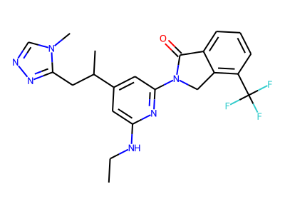 CCNC1=CC(=CC(=N1)N2CC3=C(C=CC=C3C2=O)C(F)(F)F)C(C)CC4=NN=C[N]4C