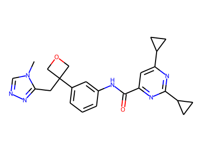 C[N]1C=NN=C1CC2(COC2)C3=CC=CC(=C3)NC(=O)C4=NC(=NC(=C4)C5CC5)C6CC6