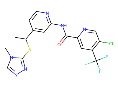CC(SC1=NN=C[N]1C)C2=CC(=NC=C2)NC(=O)C3=CC(=C(Cl)C=N3)C(F)(F)F
